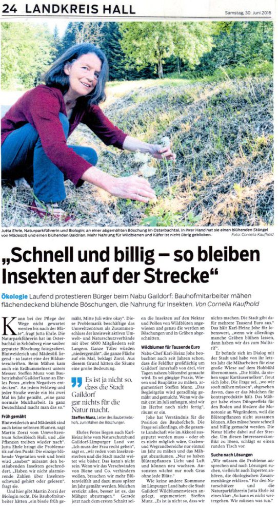 Kommunalen Grünflächen, Böschungen, Grünstreifen, Bauplätze und unzähligen kleineren Pflanzbeeten. Diese fallen einigen Mitbürgern zum Teil mit Recht böse ins Auge. Liegt der Blick doch auf Ilshofen